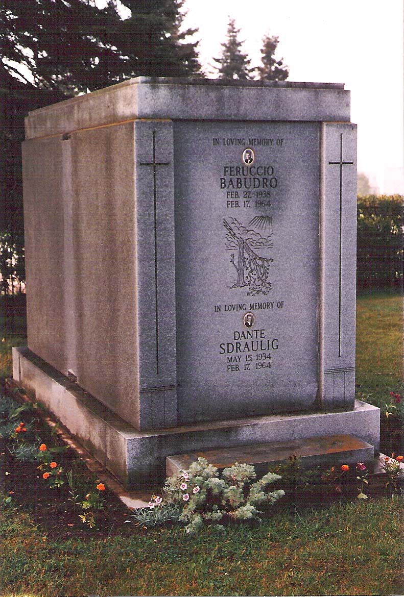 Dante Sdraulig (age 29 years) and his brother-in-law Ferruccio (age 26 years) were on their way back from the Great West Timber Company plant (a lumber supply store) in Thunder Bay, Ontario after ordering more supplies. Dante, with Ferruccio's help was building a new family home located at 52 N. Clarkson Street. At 1:40 pm their car was struck on the 7-track Clavet Street level crossing by the CPR's 15 car passenger train "The Canadian" which was travelling at 30-35 miles per hour.
